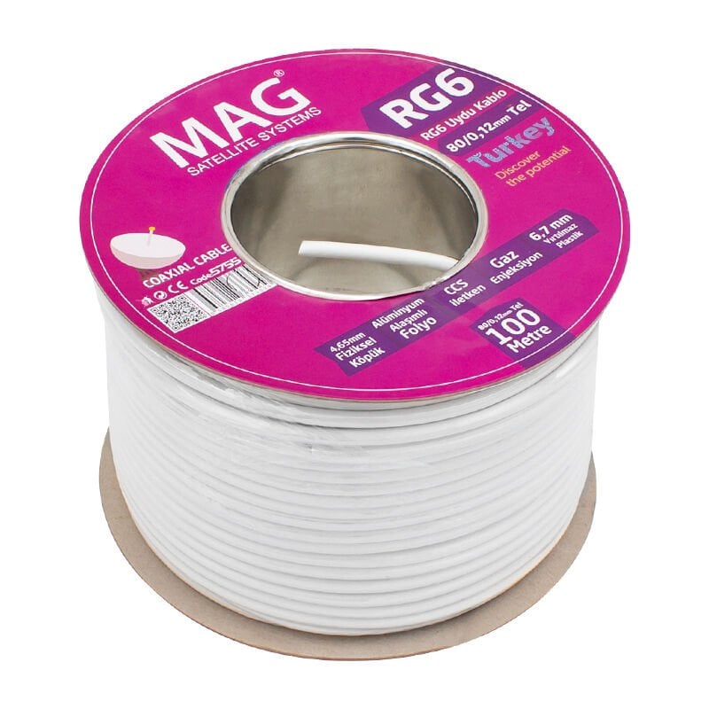 Mag RG6/U6 1.02 MM 80 Telli CCS 100 Metre Anten Kablosu Yerli Üretim Özellikleri