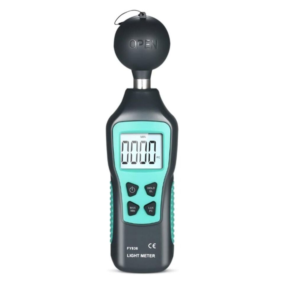 Powermaster FY836 Lux Meter, yüksek hassasiyetli ışık ölçümleri için tasarlanmış bir cihazdır. ABS plastik malzemesi, dayanıklılık ve hafiflik sağlar. Cihazın ölçüm aralığı 0 Lux ile 200K Lux arasında ve 0Fc ile 20KFc arasındadır, bu da çeşitli ışık koşullarını kapsar. Çözünürlük 1 birimdir, ve hassasiyet standart akkor lambalar için ±%4 rdg, diğer görünür ışık kaynakları için ise ±%6 rdg olarak belirlenmiştir.