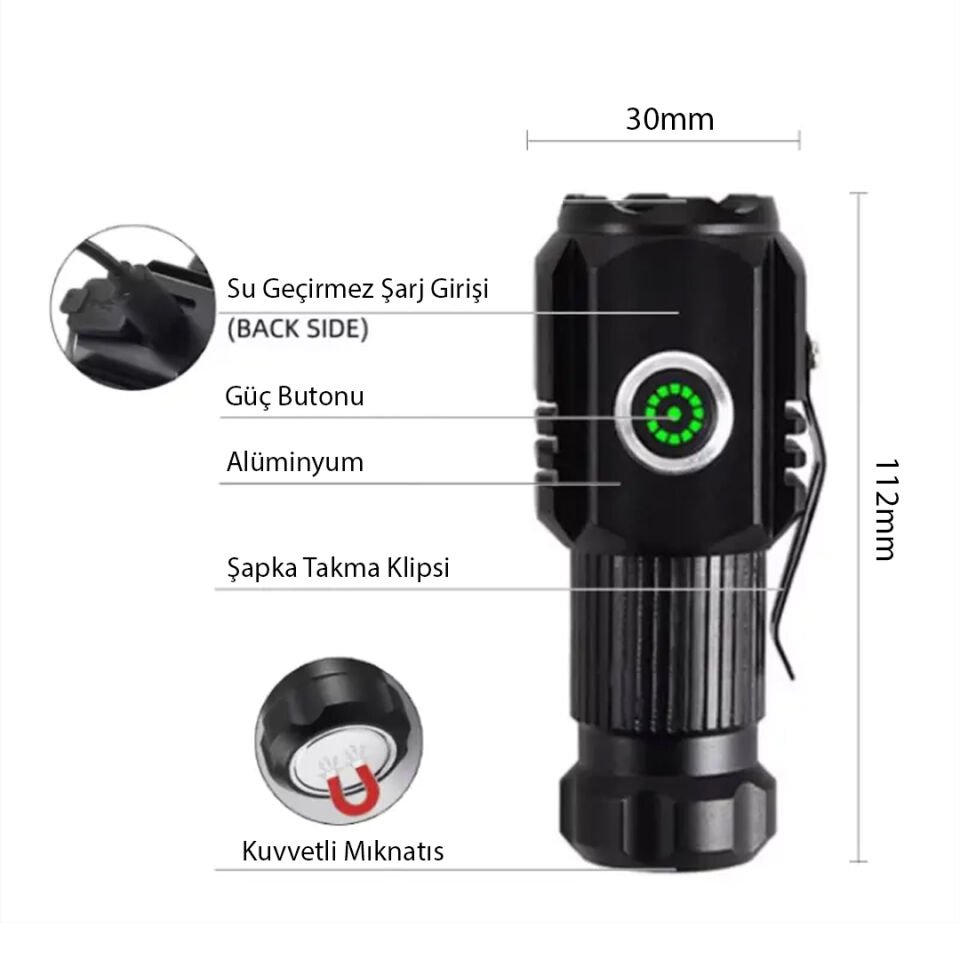 - Çok Modlu Kullanım: Yüksek ışık, düşük ışık ve flaş modu sayesinde her durum için uygun aydınlatma seçeneği sunar.