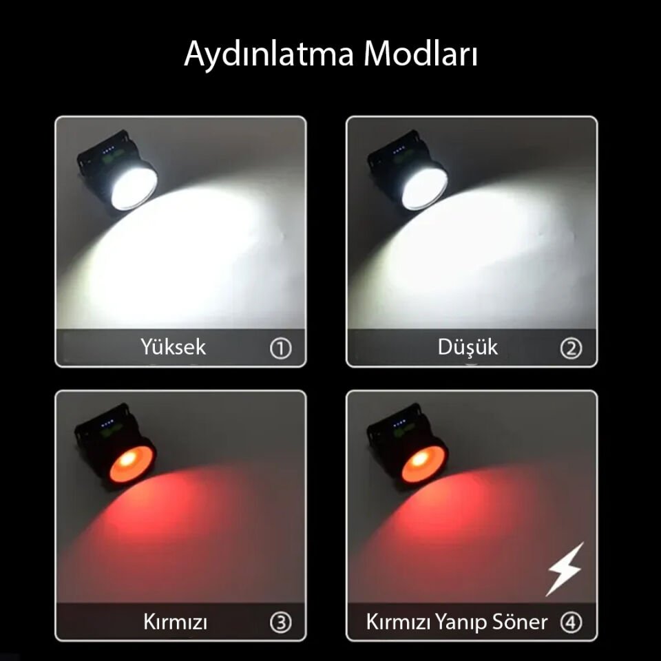 Powermaster WH-8868B Cob Led Solar Şarjlı Kafa Lambası Beyaz ve Kırmızı Işıklı TYPE-C Şarjlı Özellikleri