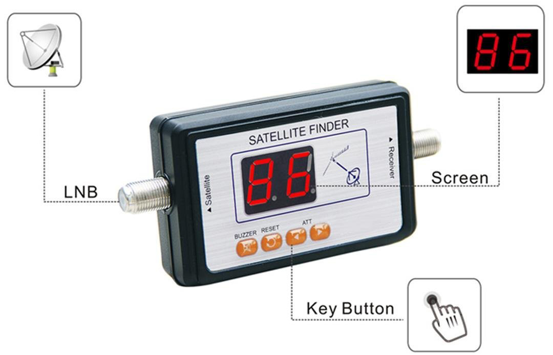 ATT tuşu ile dB'yi 1 veya 2 olarak ayarlayın, sinyal LED'i 15 ile 30 arasında bir değer gösterecektir, daha sonra çanak anten konumunu ayarlayabilirsiniz, buzzer uyarısını duyduğunuzda ve sinyal gücü değeri giderek arttığında uydu sinyalini aldığınız anlamına gelir.