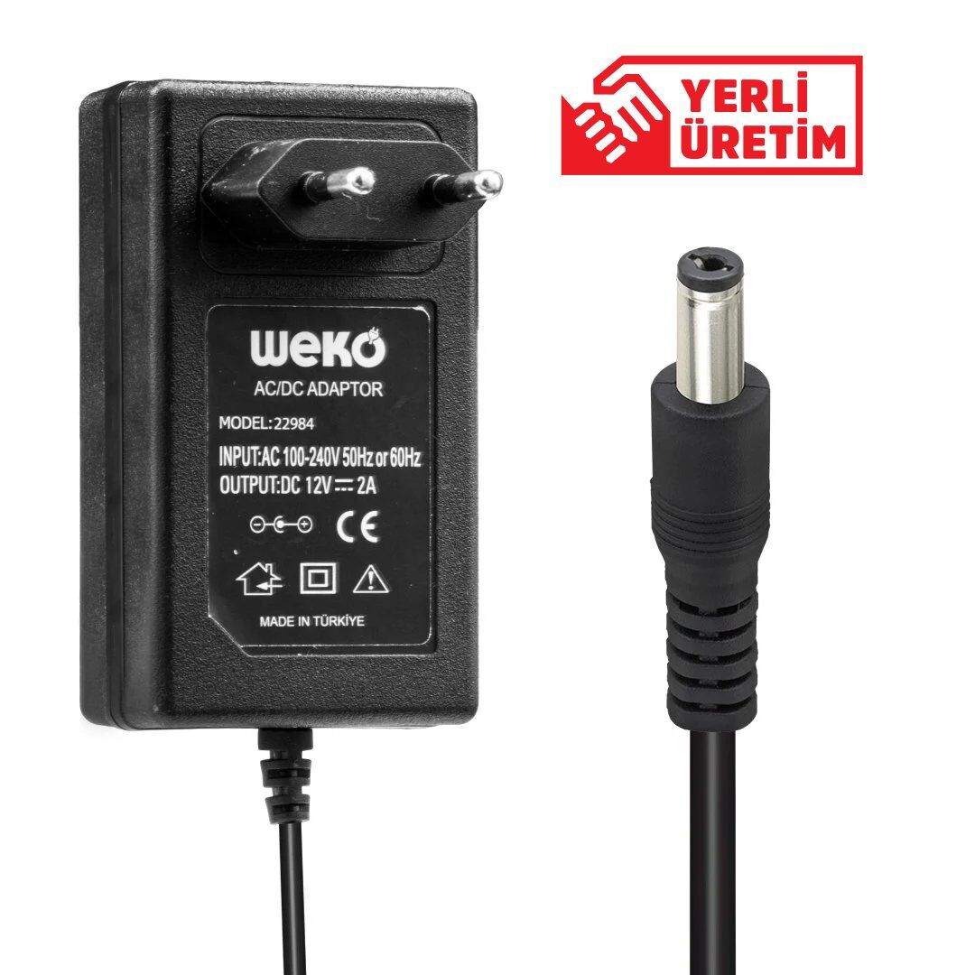 Weko 12 Volt - 2 Amper 5.5 X 2.1 Uçlu Plastik Kasa Priz Tipi Adaptör